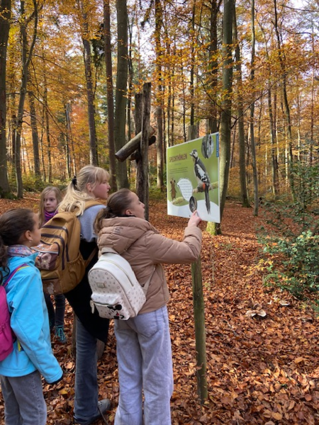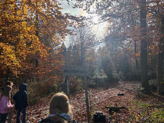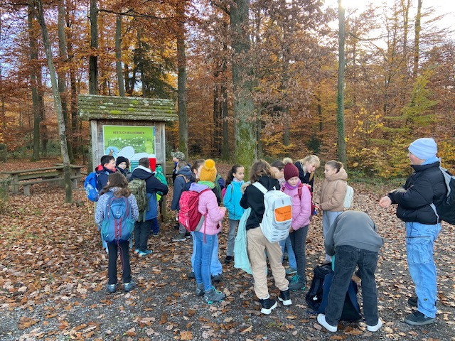 Mit dem Bus fuhren wir nach Spessart. Dort erkundeten wir den Walderlebnispfad mit seinen zwölf Mitmach-Stationen: ein Waldlabyrinth, sportliche Aktivitäten wie Tauziehen, Wippen, Weitsprung, ein Waldklassenzimmer sowie viele weitere Möglichkeiten, sich im und um den Wald zu informieren.
