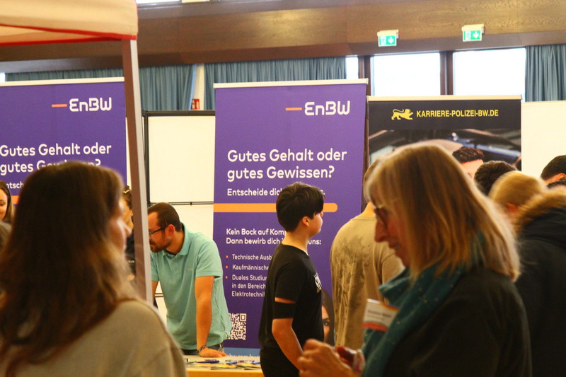 Am Donnerstag, den 13. November, öffnete das Malscher Bürgerhaus erstmals seine Türen für unsere schuleigene Ausbildungsmesse. Zwischen 15 und 17 Uhr hatten die Schülerinnen und Schüler der Hans-Thoma-Schule Zugang zu diesem neuen Veranstaltungsformat, das ganz auf ihre Bedürfnisse zugeschnitten war.
