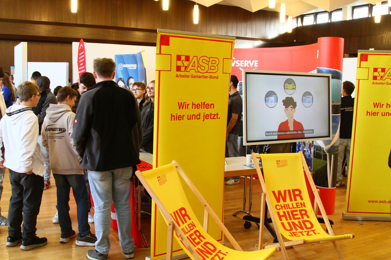 22 Unternehmen aus der Region stellten ihre Ausbildungsangebote vor und kamen mit unseren Jugendlichen ins Gespräch. Dabei konnten sich die Schülerinnen und Schüler nicht nur umfassend über verschiedene Berufsbilder informieren, sondern auch wertvolle erste Kontakte zu möglichen Ausbildungsbetrieben knüpfen.