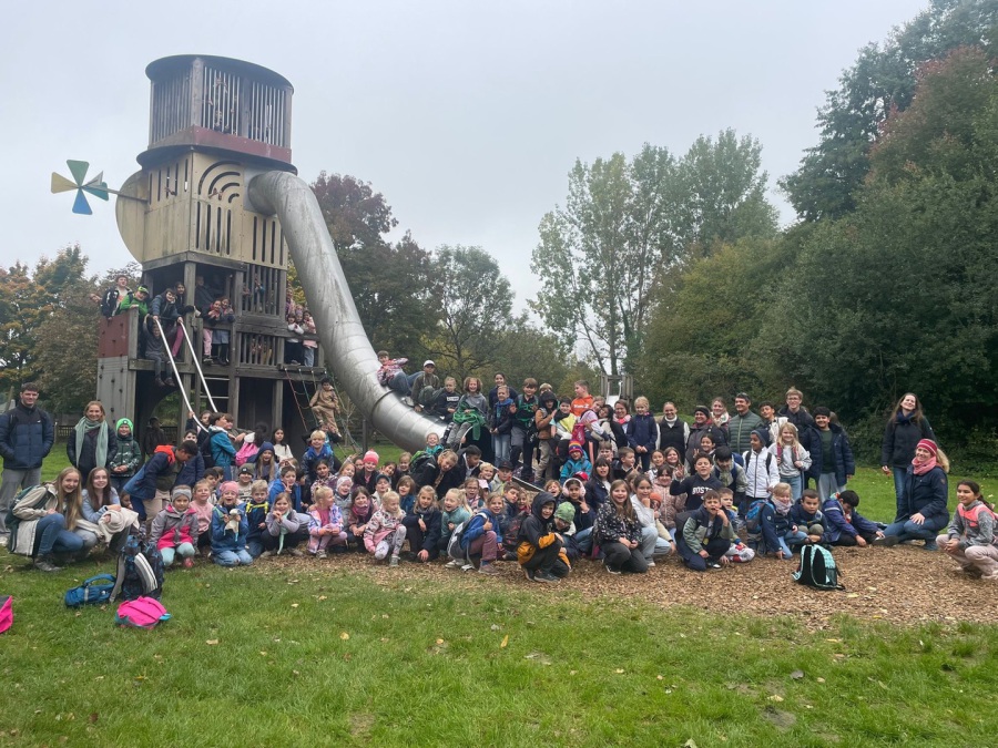 Am 8. Oktober fand der jährliche Wandertag der Grundschule statt. Gemeinsam machten sich alle Klassenstufen von 1 bis 4 voller Vorfreude auf den Weg in Richtung Muggensturm, mit dem Ziel: Spielplatz und Tierpark.