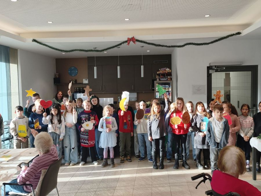 Die Klassen 3a und 3b der Hans-Thoma-Schule Malsch besuchten in der Adventszeit die Senioren-Residenz Malsch (Incura - Schillingerring 6) im Ort und brachten viel Freude und weihnachtliche Stimmung mit. Die Kinder sangen gemeinsam die Lieder „In der Weihnachtsbäckerei“ und „Rudolph hat es eilig“ und zauberten damit ein Lächeln auf viele Gesichter.